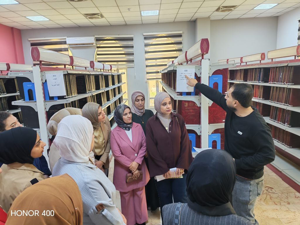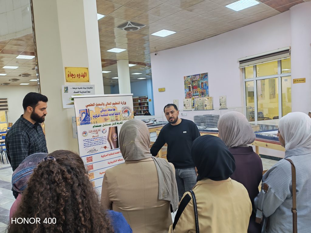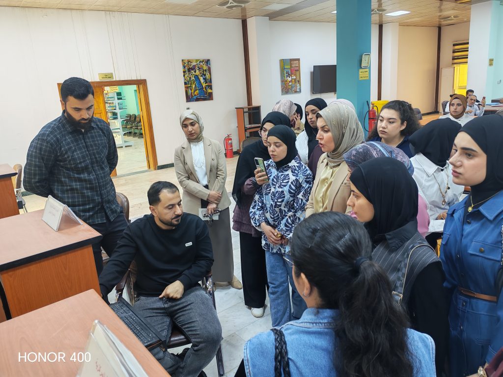 ضمن برامج الامانة العامة للمكتبة المركزية بالتوعية المعرفية للطلبة والباحثين وحسب توجيهات السيد رئيس الجامعة الاستاذ الدكتور تحسين حسين مبارك المحترم وإشراف الامين العام للمكتبة المركزية الاستاذ الدكتور سلام جاسم عبد الله المحترم .. أستقبلت الامانة العامة للمكتبة صباح يوم الاحد الموافق 5/4/2026 طلبة الدراسات الاولية كلية العلوم / قسم علوم الكيمياء المرحلة الثانية والرابعة الدراسة الصباحية برفقة التدريسيين م.د الاء عيسى سلطان / م.م جنان محمد محمود/ سليمة كريم احمد. / م.د رحاب جمعة منصور / ا.م وجدان عامر ابراهيم / م.م اسيل جمال احمد / م.م حوراء حسين خضير / م.م نغم عارف احمد / م.م هبه باسم ذياب المحترمون .. وتم تنظيم جولة تعريفية لهم داخل أروقة وشعب ووحدات المكتبة المركزية من قبل م.م طه محمد عبد الكريم التدريسي بالمكتبة المركزية وتعريفهم بأبرز الخدمات التقليدية والالكترونية المتاحة ولغرض تعزيز مهاراتهم البحثية والمعرفية والاطلاع على اهم مصادر المعلومات المتاحة فيها .